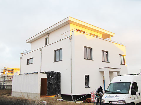 Wunsch der Familie war es ein Haus mit großzügigen Rückzugsbereichen für jeden der 4 Familienmitglieder zu erhalten, sowie ein Gästezimmer und ein Büro im Haus einrichten zu können.